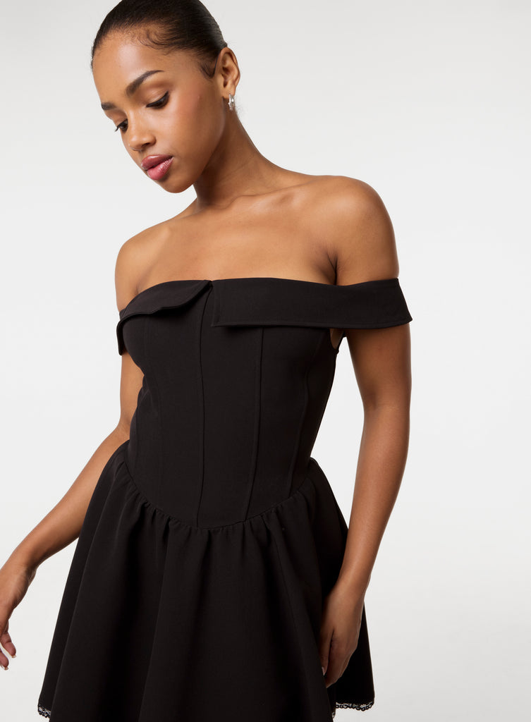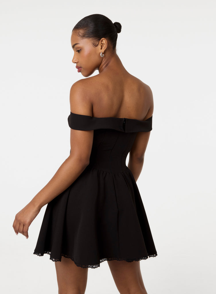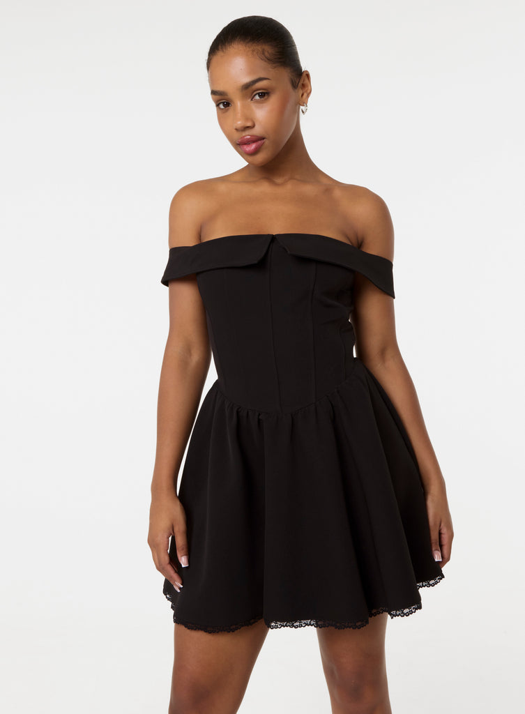 This season, we got you the perfect delicate and fun mini dress for any party. Featuring a boning structure, off the shoulder neckline and lace hem, it's time to slay, queen.