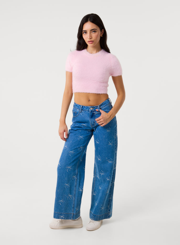 Feel the cutest in this adorable Ribbon Bow Jeans by Pink Vanilla. With a cool fit and a trendy wash, they will be your new fave denim.