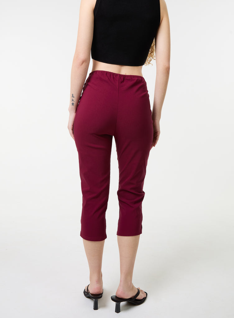 Give Y2K vibes in these staple capri trousers. Featuring a slim-fit silhouette with a mid-rise waist, side belts detail and classic cropped design.