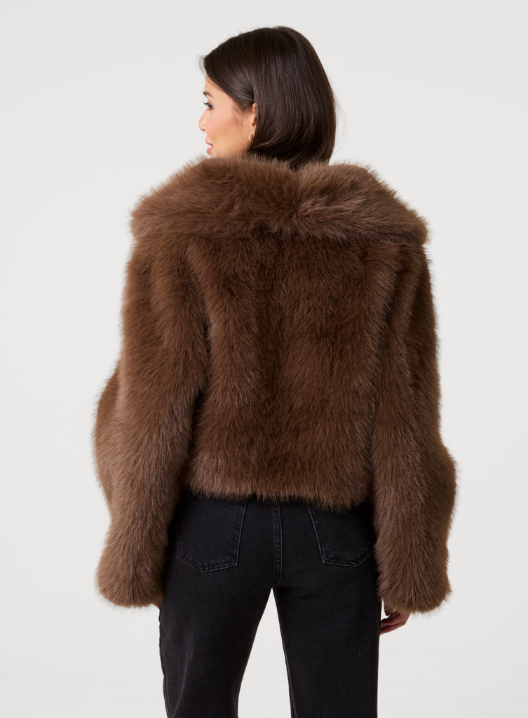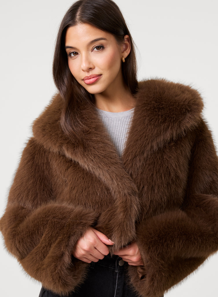 Keep yourself extra warm this winter with Pink Vanilla. Add to your cart this Cropped Fur Jacket, fluffy and trendy, it will be your go-to option layer from office looks to nights out.