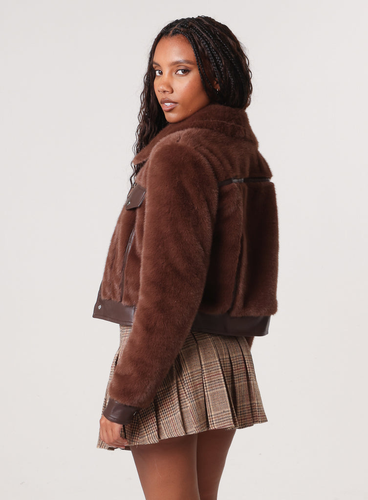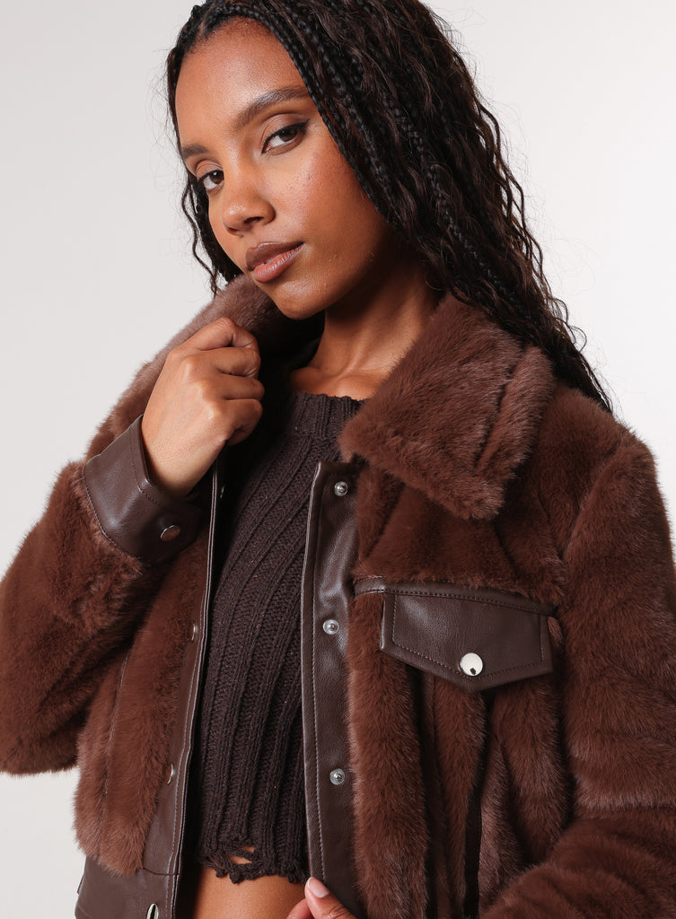 Winter is all about cosy and warm jackets. Add this Faux Fur PU Button Jacket to your collection. Stylish biker look, featuring soft faux fur and PU trims for a streetwear look.