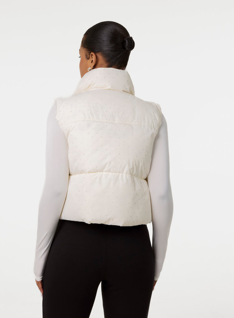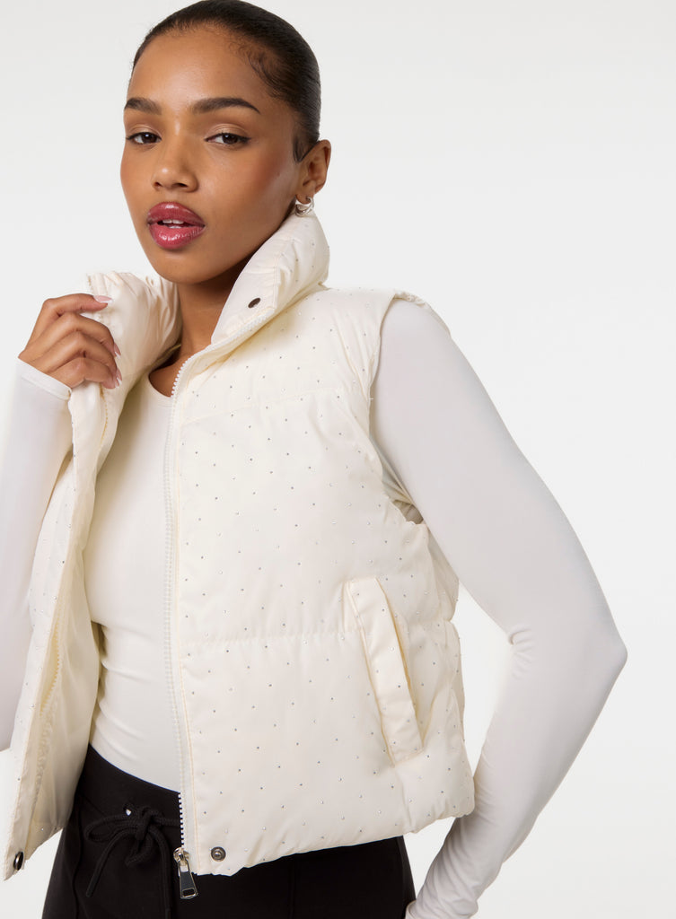 Get cosy and cool in our Diamante Puffer Gilet. This winter warmer is sure to keep you feeling stylish and comfy this season.
