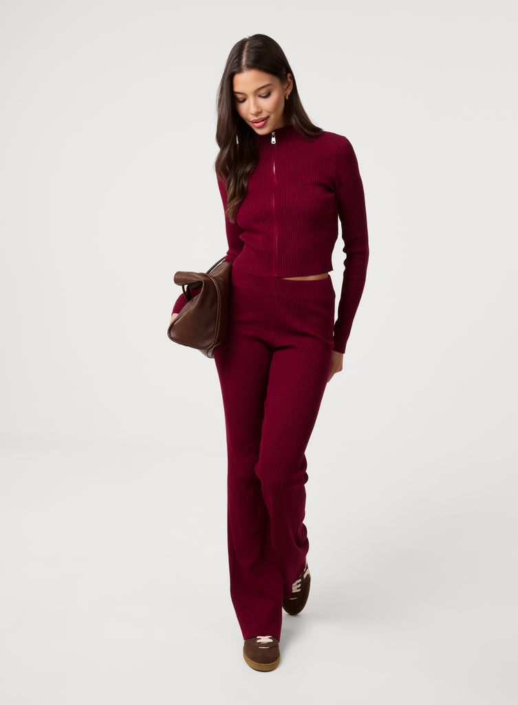 This set is perfect for last minute errands, as an airport outfit, chilling at home or comfy days out. Sold together, this zip up ribbed long sleeve top and ribbed bottoms two piece set will be your new fave.