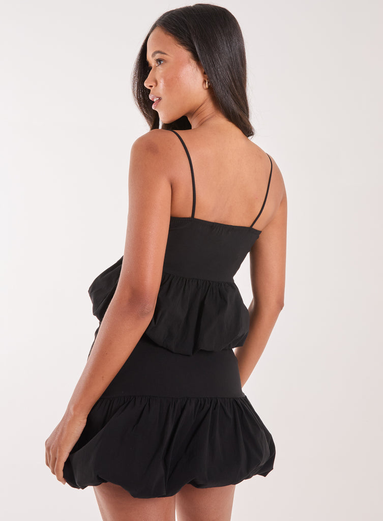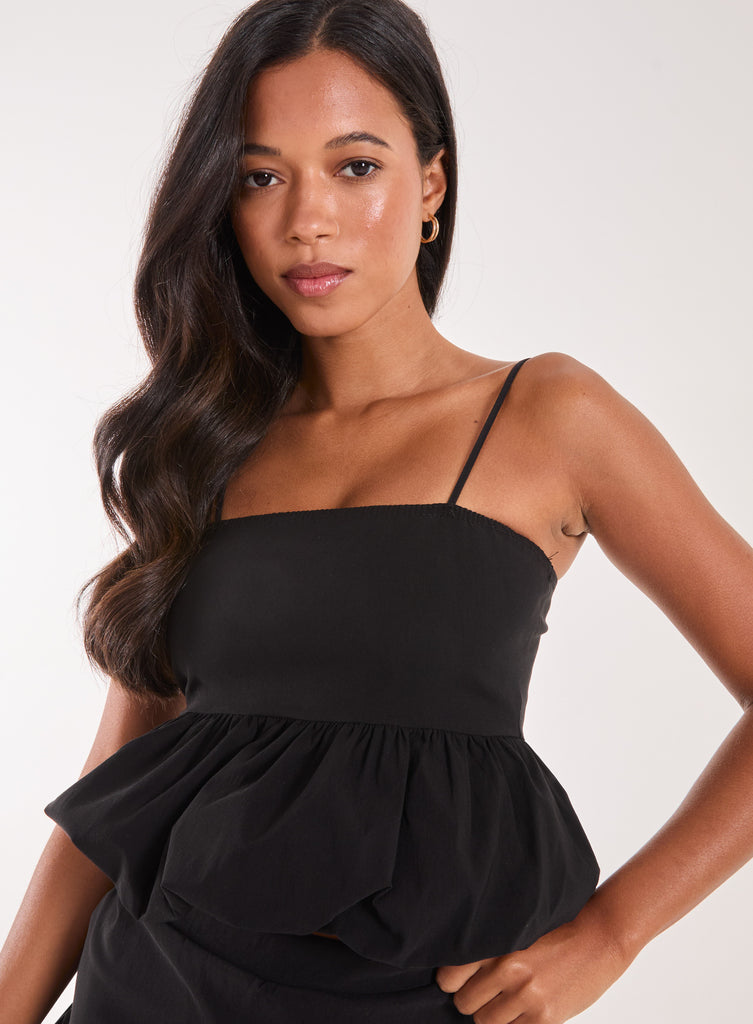 Featuring a puffball hem, this lovely strappy top will be the trend of the year. Just pair it with our Puff Hem Mini Skirt, for the cutest set ever.