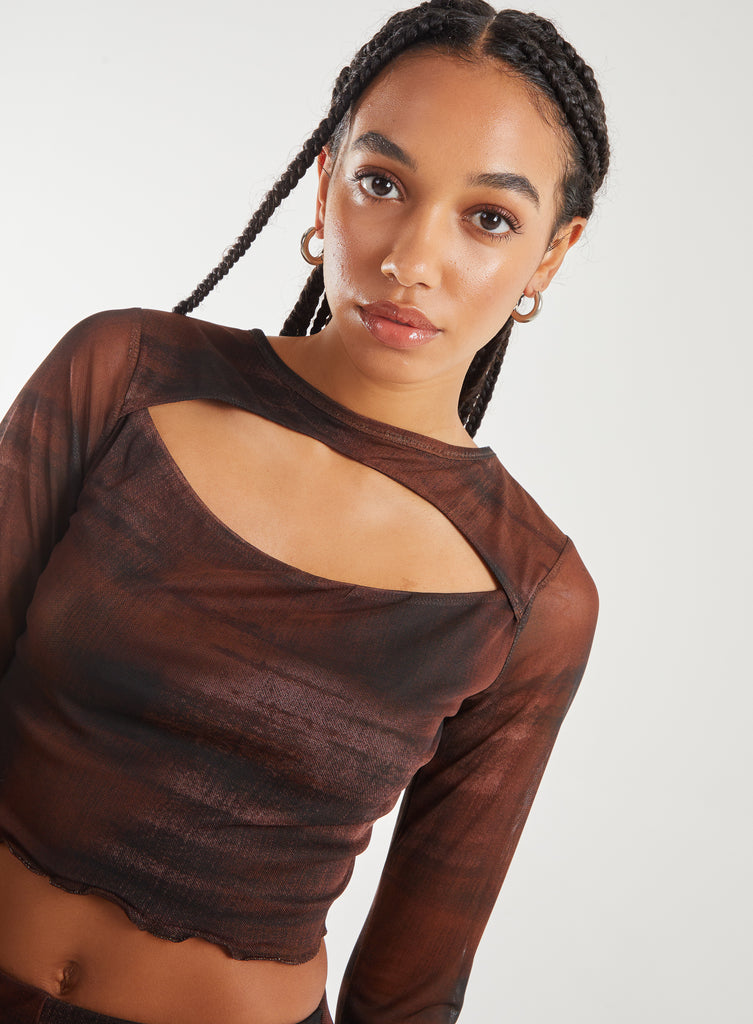 Be stylish, comfy and sexy all at the same time. Rock this Saturn Long Sleeve Letterbox Top and Saturn Mesh Flare Trousers set!