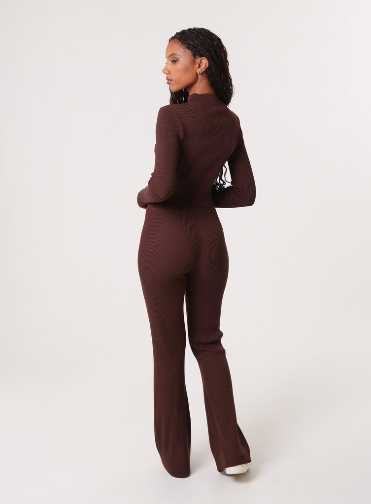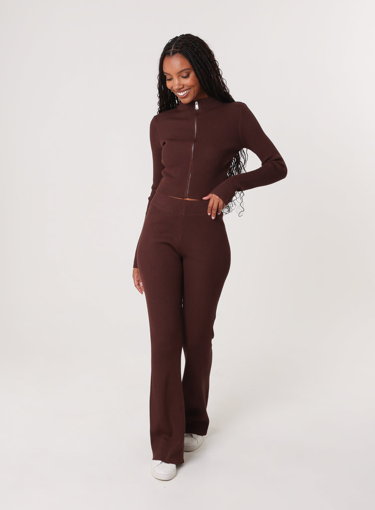This set is perfect for last minute errands, as an airport outfit, chilling at home or comfy days out. Sold together, this zip up ribbed long sleeve top and ribbed bottoms two piece set will be your new fave.