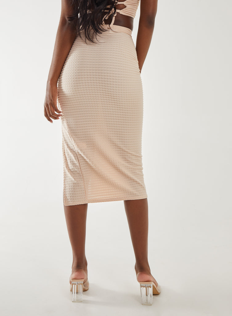 Pair Pink Vanilla's Textured Jersey Midi Skirt with our Textured Jersey Puff Sleeve Top. The perfect cute set!