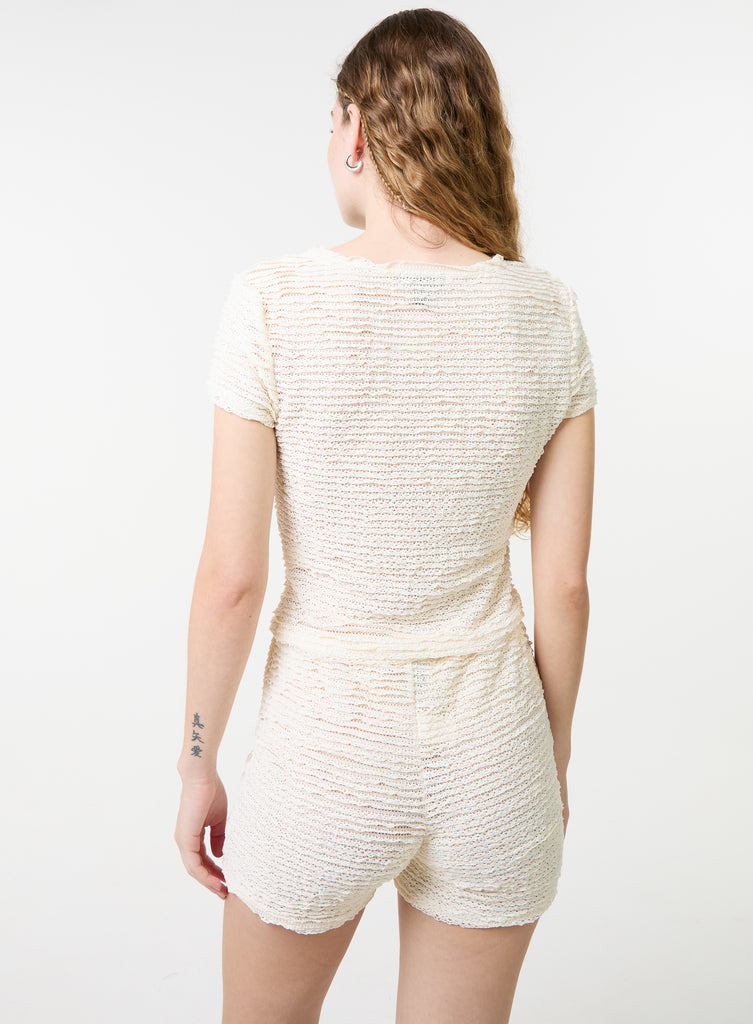 Festival season is around the corner and at Pink Vanilla we're starting to feel the buzz. Wear this Textured Stretch Mini Shorts and Textured Stretch Jersey Top set and be ready to dance all day long.