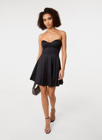 Feel sexy and make a statement in this party-wear style that is the slay of the season. Featuring diamante detail, back tie fastening and cupped bra, you'll be the centre of any dancefloor in this Diamante Satin Dress.