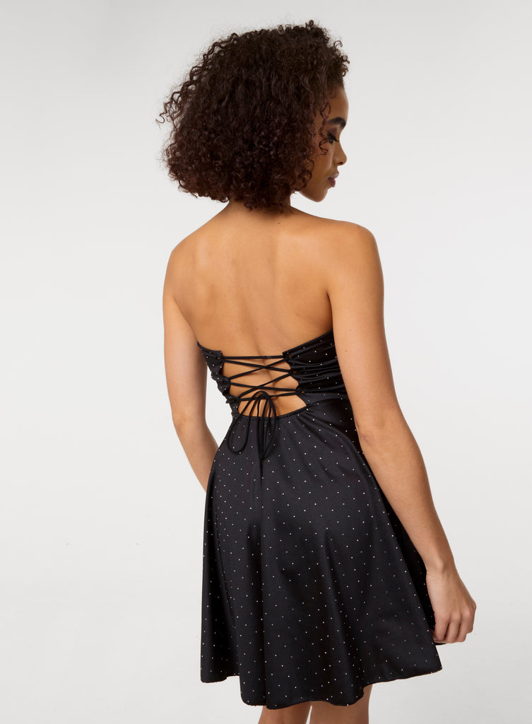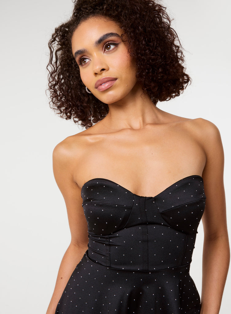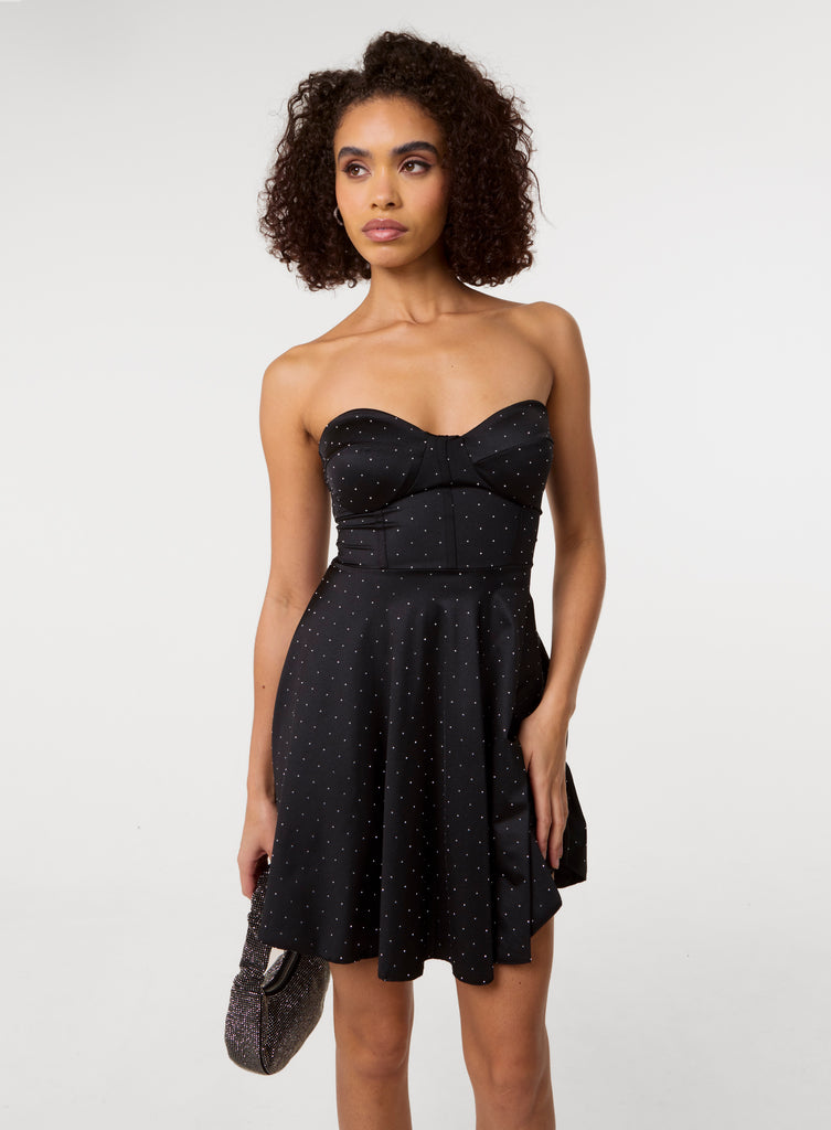 Feel sexy and make a statement in this party-wear style that is the slay of the season. Featuring diamante detail, back tie fastening and cupped bra, you'll be the centre of any dancefloor in this Diamante Satin Dress.
