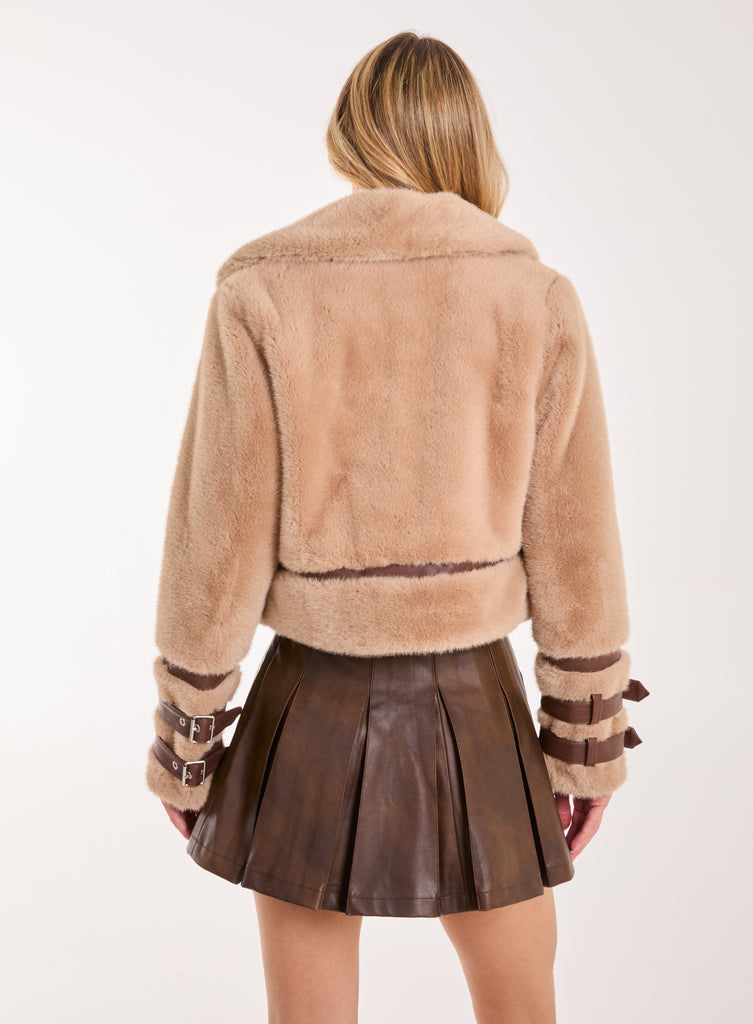 Keep it warm this season with this trendy Fur PU Buckle Detail Coat by Pink Vanilla.
