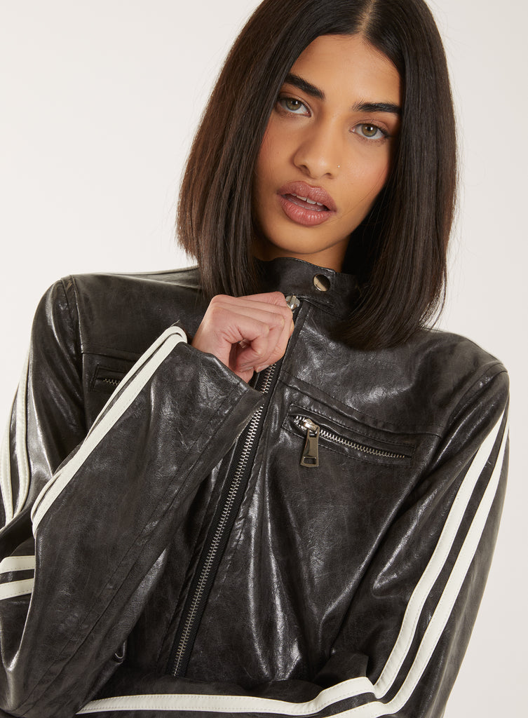 A racer motor stone-washed jacket is the trend of the year. Streetwear style at its peak.
