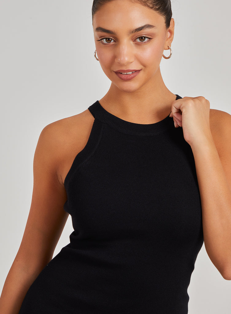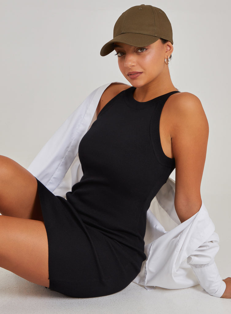 Don't miss out on the party wear piece of the season! This Racer Back Ribbed Mini Dress will keep all eyes on you. Pair with strappy heels for a trend-worthy look.