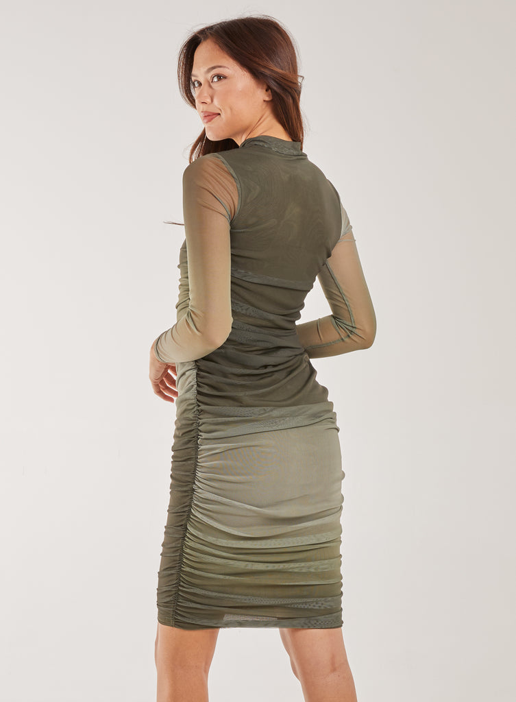 Long Sleeve Ombre Mesh Midi Dress