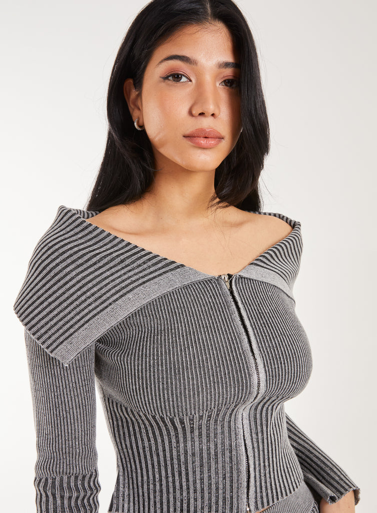 This Washed Rib Fold-over Cardigan is designed to pair with our Two Tone Rib Seam Detail Flares for an effortlessly cool look. A great addition to your wardrobe. You can also mix and match with our Two Tone Rib Midi Skirt and Two Tone Rib Corset Detail Top.