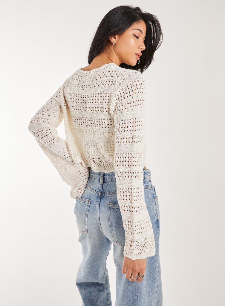 Get festival ready with this cool crochet long-sleeved top.