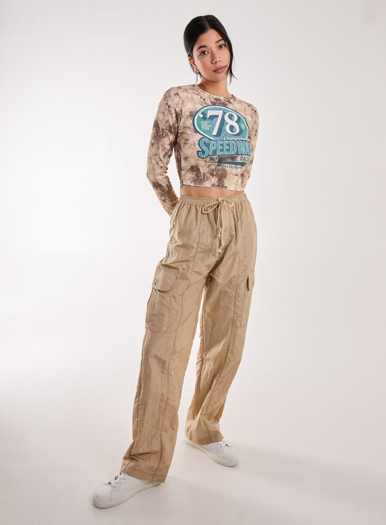 Racer Washed Printed Long Sleeve Top