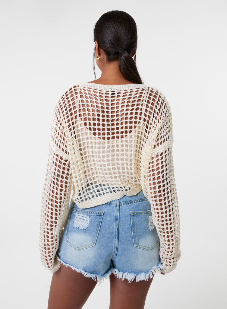 Get ready for festival season and beach parties this summer with Pink Vanilla's Sequin Crochet Jumper. Pair it with our Denim Distressed Shorts and cowboy boots for an insta-worthy look.