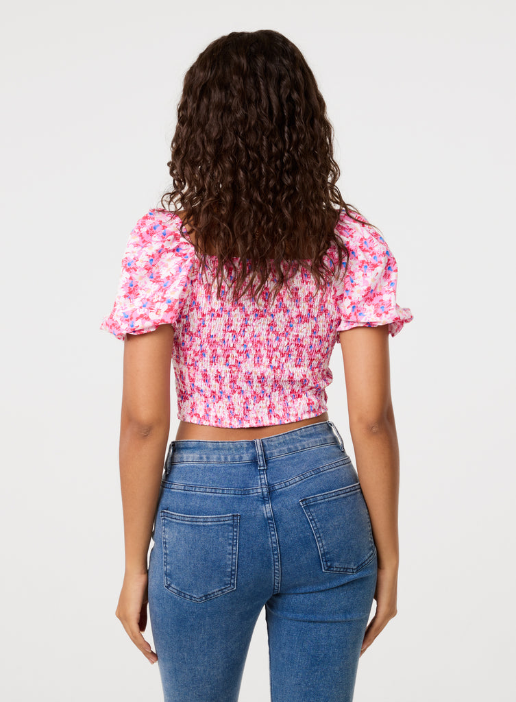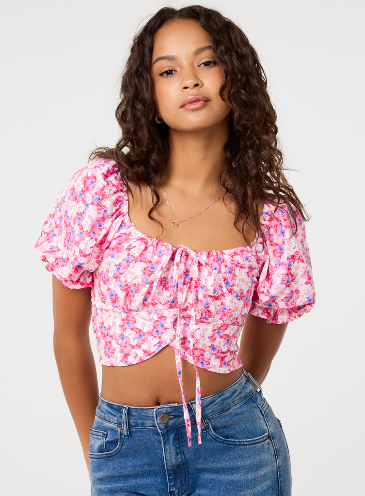 Tie Detail Puff Sleeve Crop Top