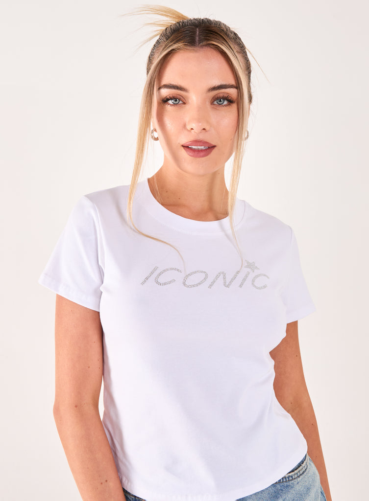 Be iconic and say it to everyone by wearing this cute baby tee by Pink Vanilla.