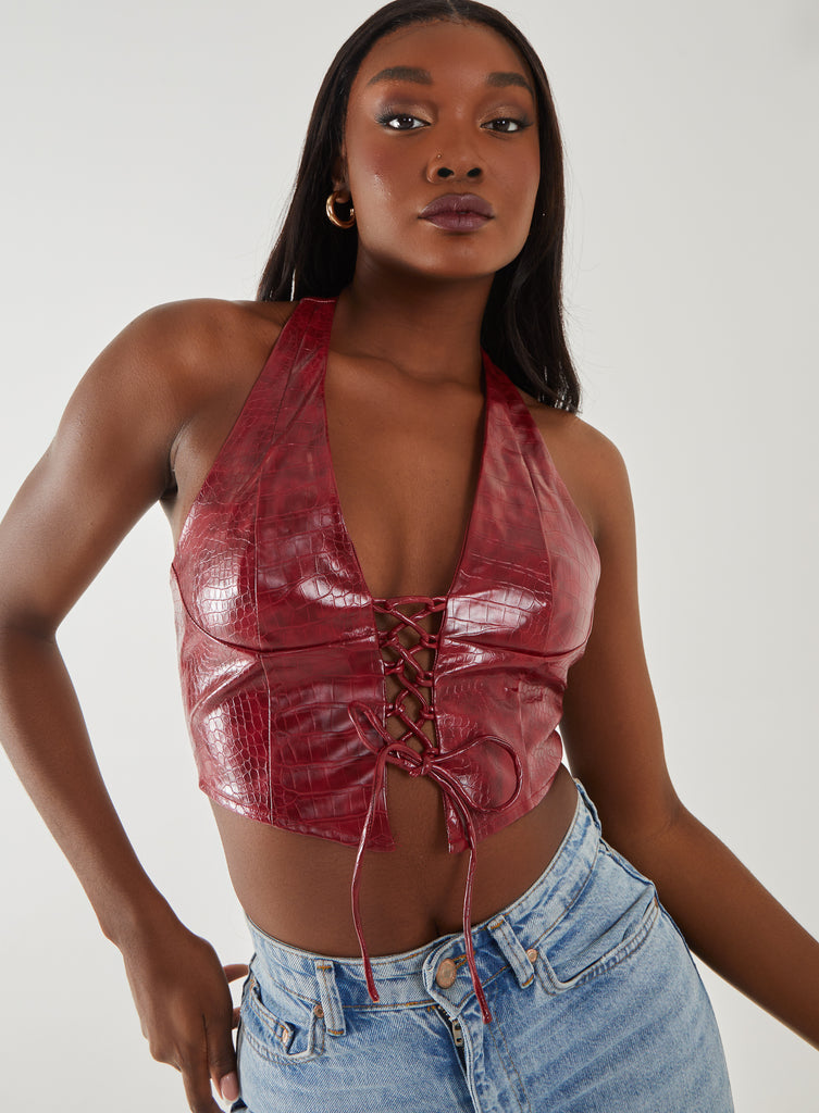 If you ask us this Faux Snake PU Lace Up Corset Top is the must-have of the season. Sexy and trendy, all eyes will be on you!