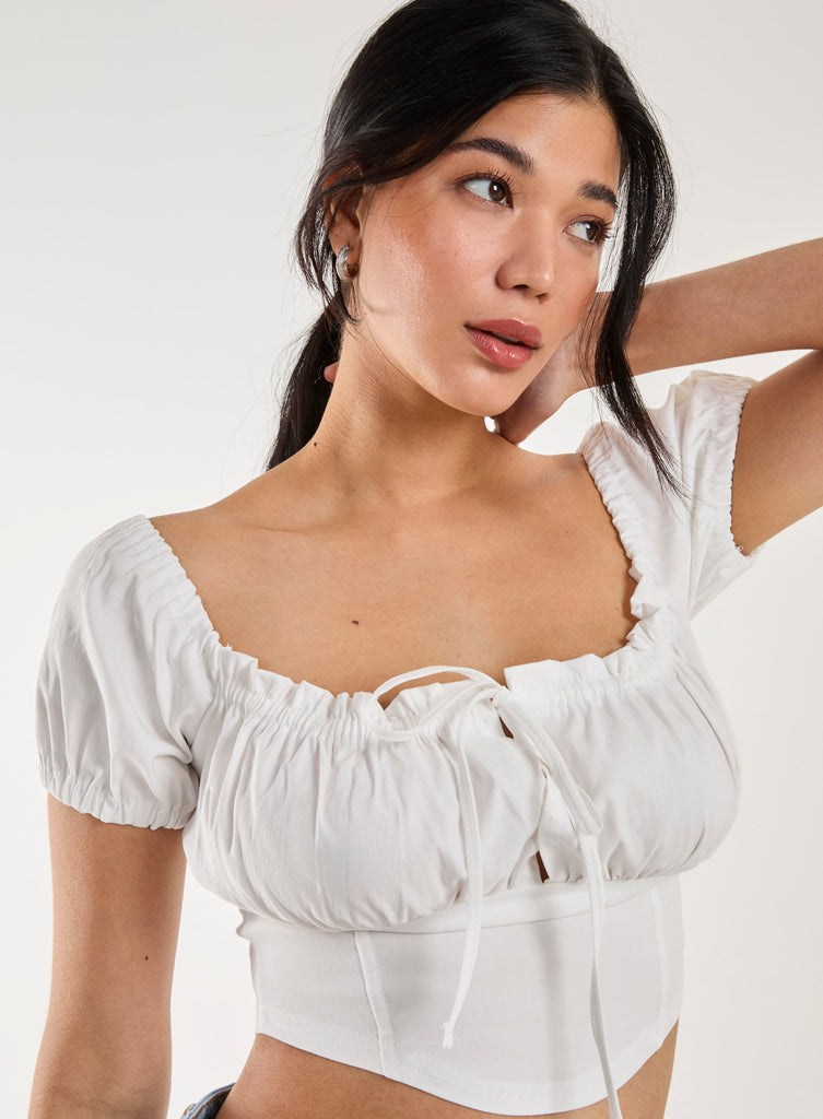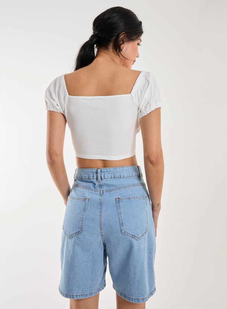 Cutest top around. This Bengaline Puff Sleeve Top is perfect for the season ahead, pair it with denim shorts and a cardi for an off-duty look.