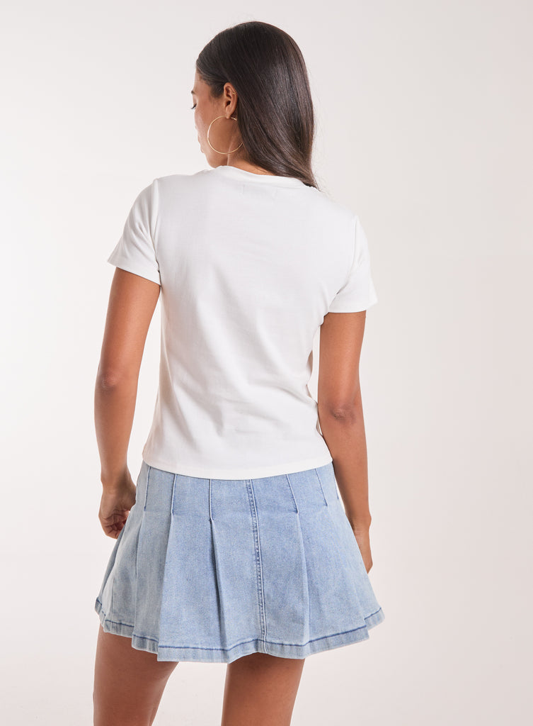 This white tee features a cherry rhinestone embellishment and is the perfect pick for your day-to-day fit.