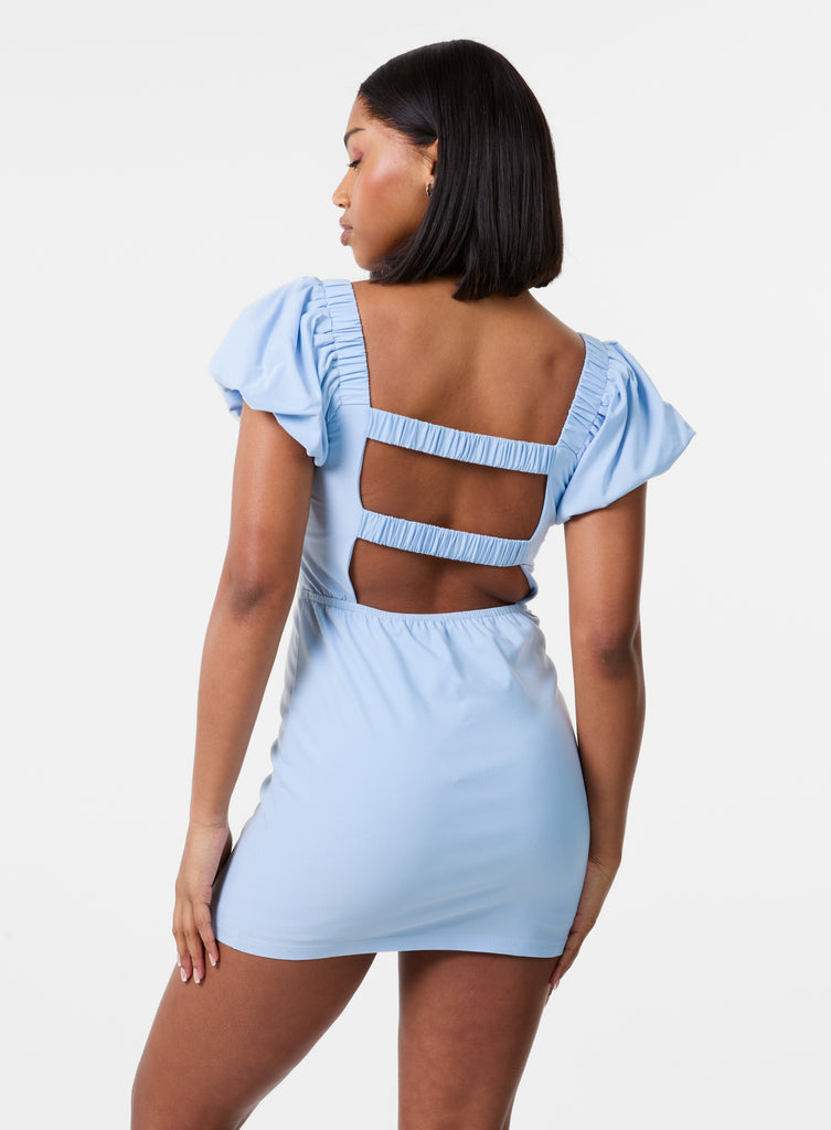 Puff Sleeve Open-Back Mini Dress With Shorts