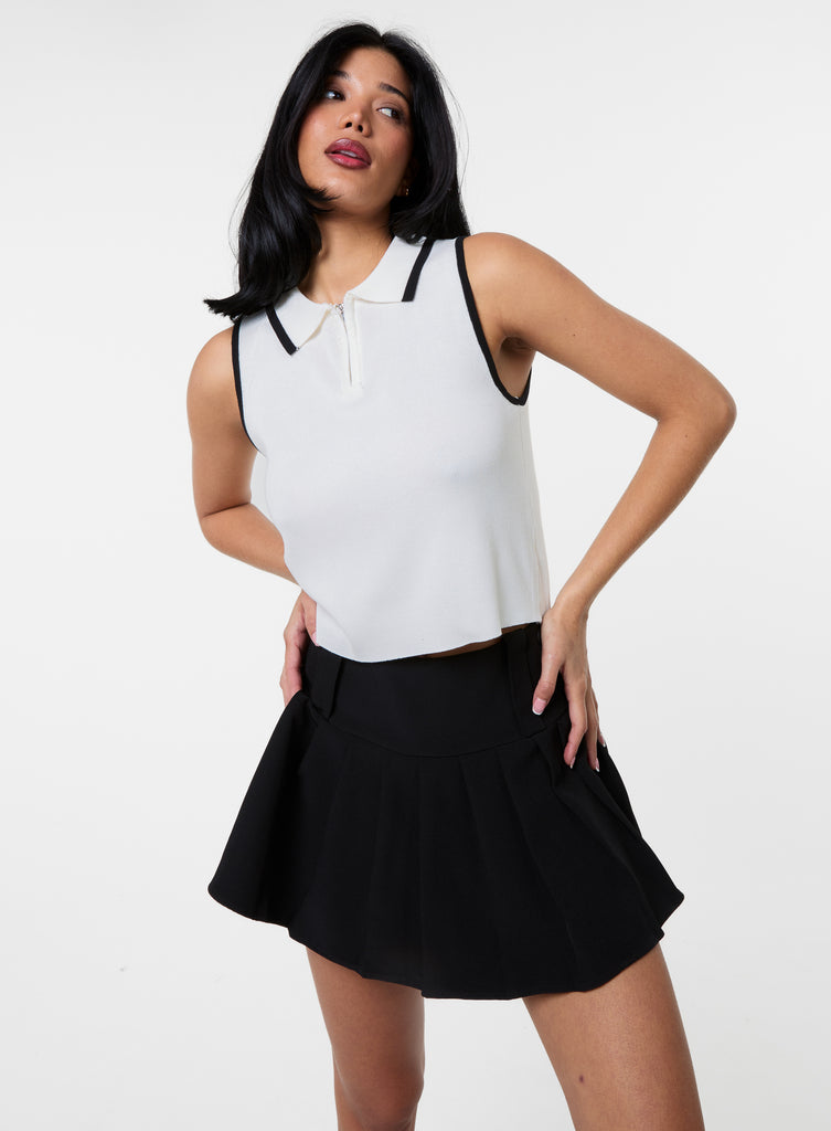 Collared vests are always a must-have for every girl wardrobe, so just add this cute Half Zip Crop Top With Contrast Piping to your cart now!