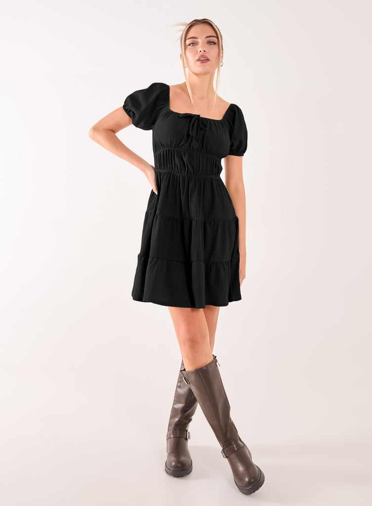 As days get longer and warmer, we're ready to bring you the best and cutest outfit options. Show some skin with our Puff Sleeve Open-Back Mini Dress With Shorts and dress up for a night out with your besties with our bestseller Check Cap Sleeve Mini Dress.