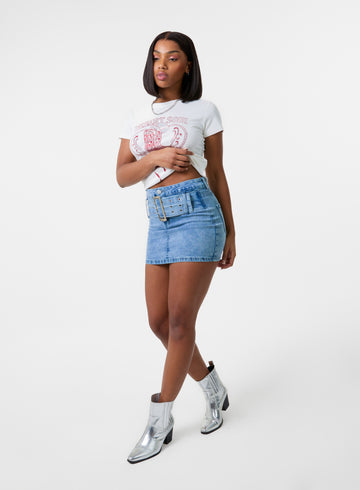 Embrace all the Y2K vibes with this super mini skirt. The big belt detail adds the edgy side you need to change your streetwear game.