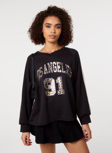 Our most trending piece of the season is now here for you in long sleeves. Sporty girls, we're here for you. Style this Metallic Leopard Long Sleeve Sports Jersey with barrel jeans and trainers for a comfy yet viral look.
