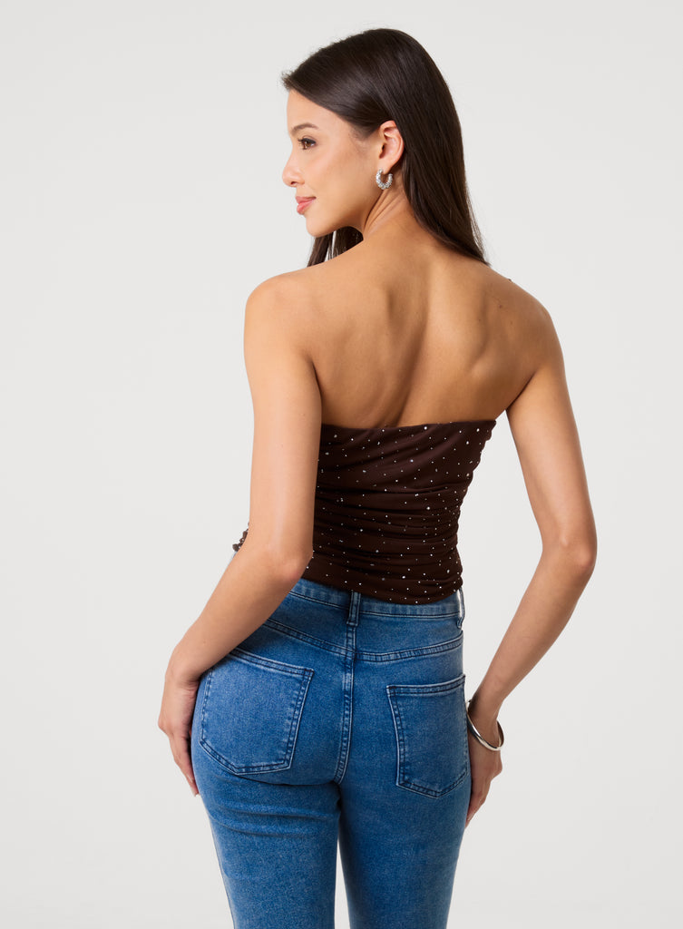 Bring luxe vibes to your going out 'fit. Pair this Diamante Bandeau Top with a denim mini and cowboy boots.
