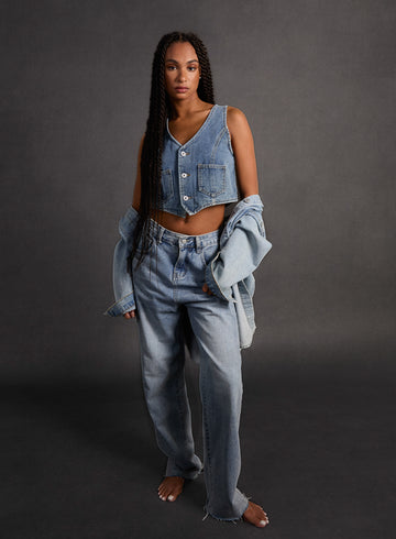 At Pink Vanilla we think the waistcoat trend is here to stay. So, we got you this Denim Cropped Waistcoat to style all year around. Get ready for summer, wear it on its own or with a cute tee.