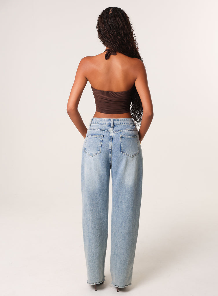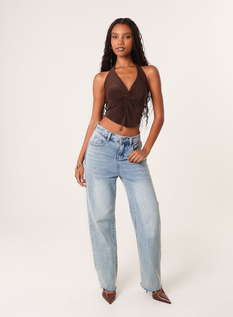 Update your summer wardrobe with this Knot Front Butterfly Halter Top. Pair with wide leg jeans and gold jewellery for a chic daytime look.
