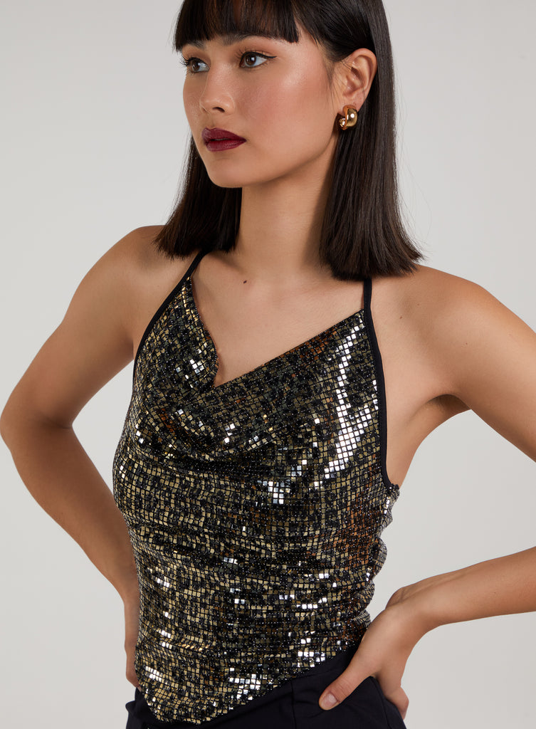 Animal Print Sequin Cowl Neck Top