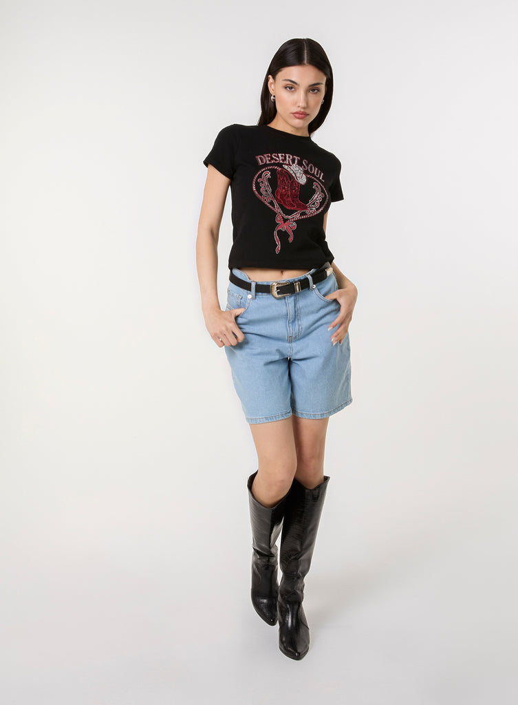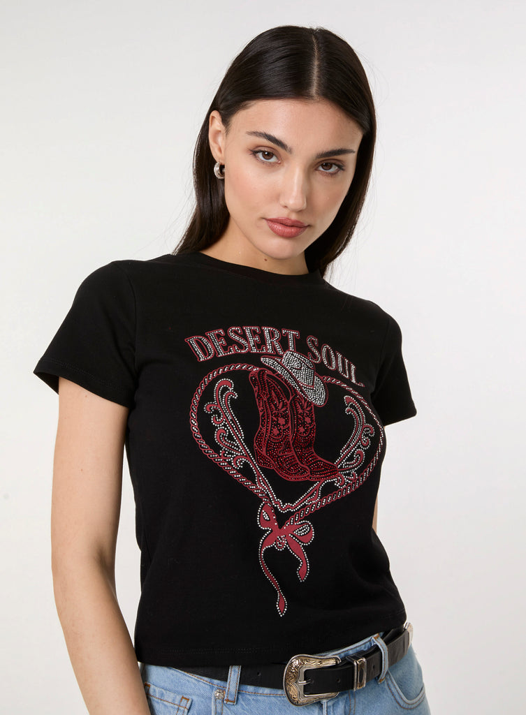 Embrace all the festival vibes with this Cowboy Boot Embellished T-Shirt.