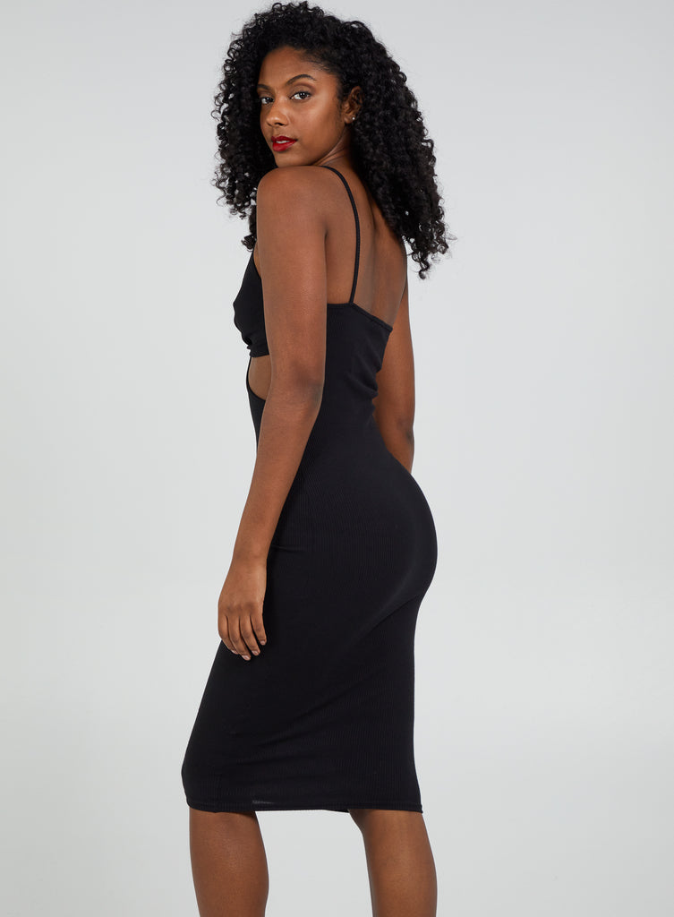 Cut Out Ribbed Midi Dress