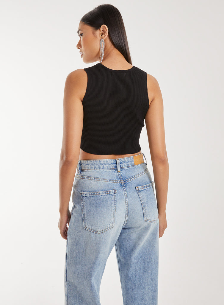 Sparkle like a chandelier with this cute Diamante Hem Hanky Top. Finish off the look with silver pendant earrings and a Y2K silver shoulder bag for a club night out this festive season.