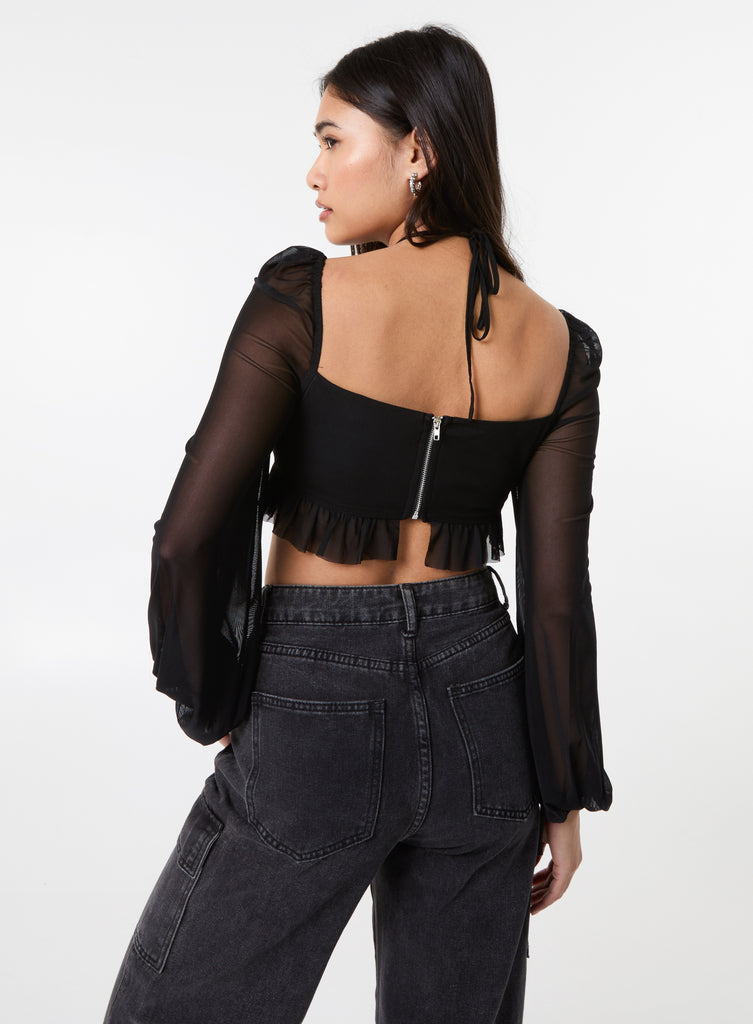 Need an out-out top to go with your jeans? Look no further. This Long Sleeve Halterneck Crop Top is the final touch to any outfit.