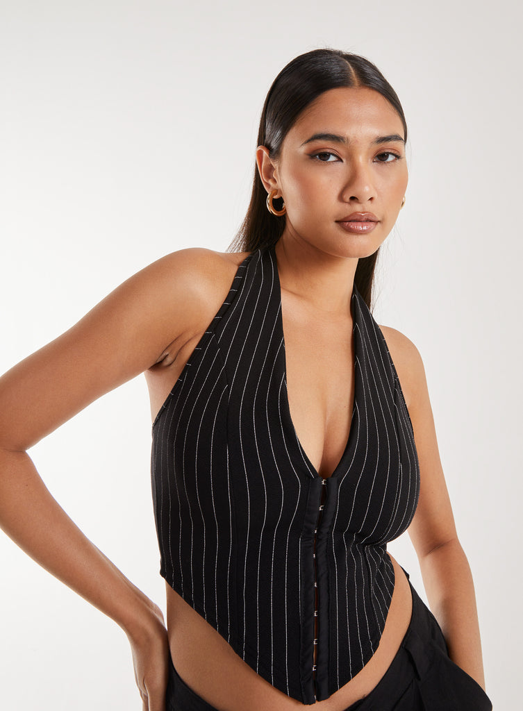 90s vibes at Pink Vanilla! Pinstripe Waistcoat?! Yes, please! Pair with our matching skirt.