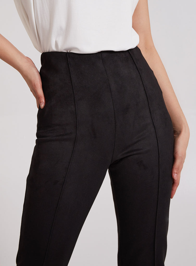 Keep your look seriously chic with these pintuck bottoms. Featuring a suedette material with a high waistline. Team these trousers with a retro 80's padded shoulder top for a fierce weekend worthy combo.