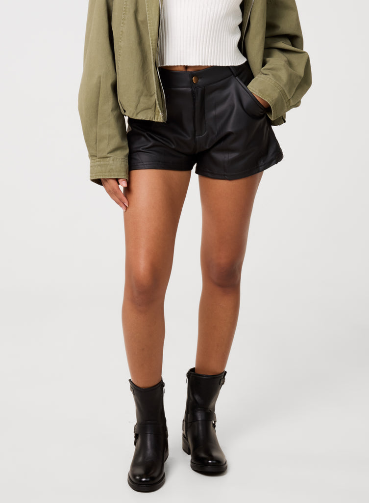 Grab your essentials for the winter at Pink Vanilla. Our PU Shorts are perfect for any occasion. Pair them with black tights and knee high boots for a fun date night whilst being comfy!