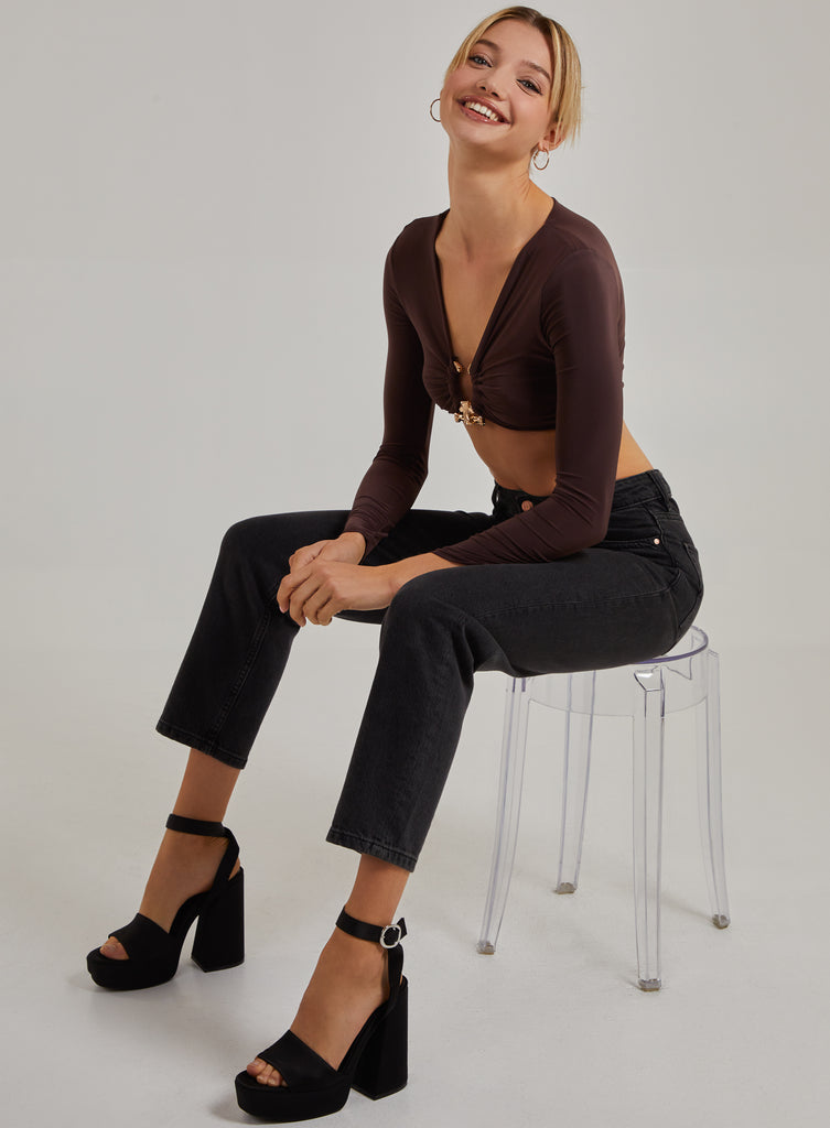 Be sure to get heads turning in this Slinky Long Sleeve Top. Pair with our Slinky Mini Skirt for the ultimate go to 'fit.