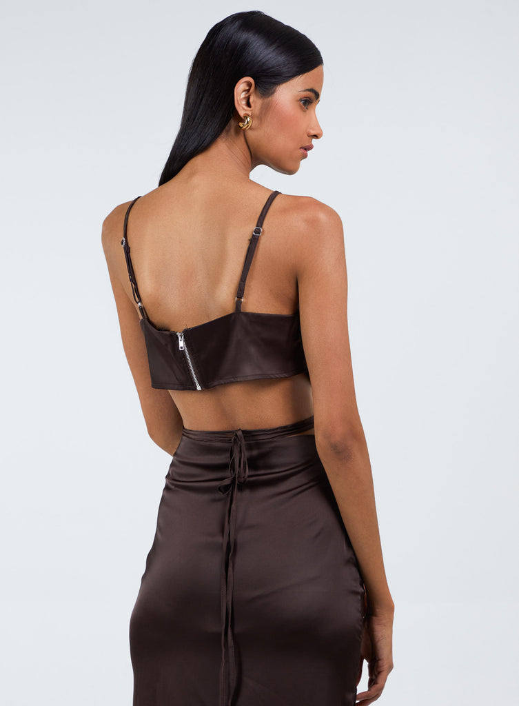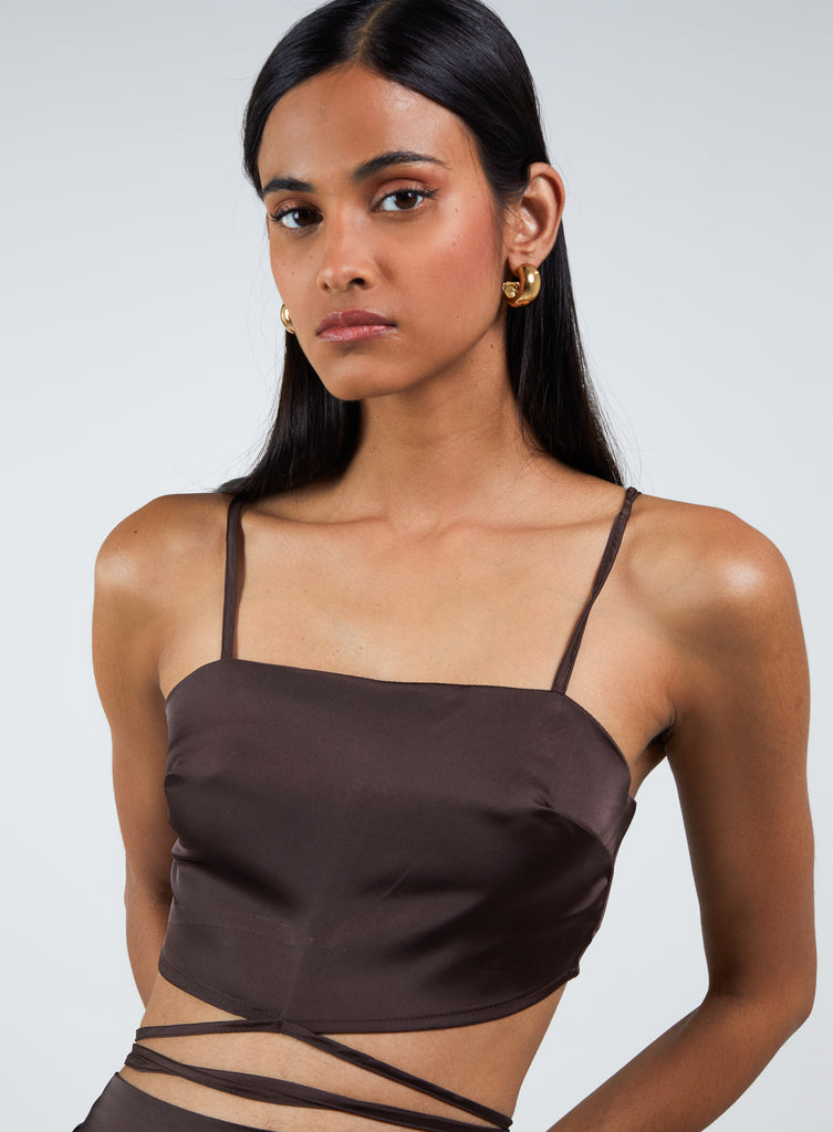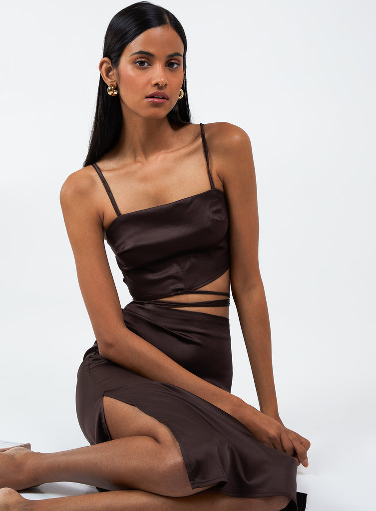 Opt for this silky tie wrap top, and team it with our silky skirt. A set made for those extra special occasions.