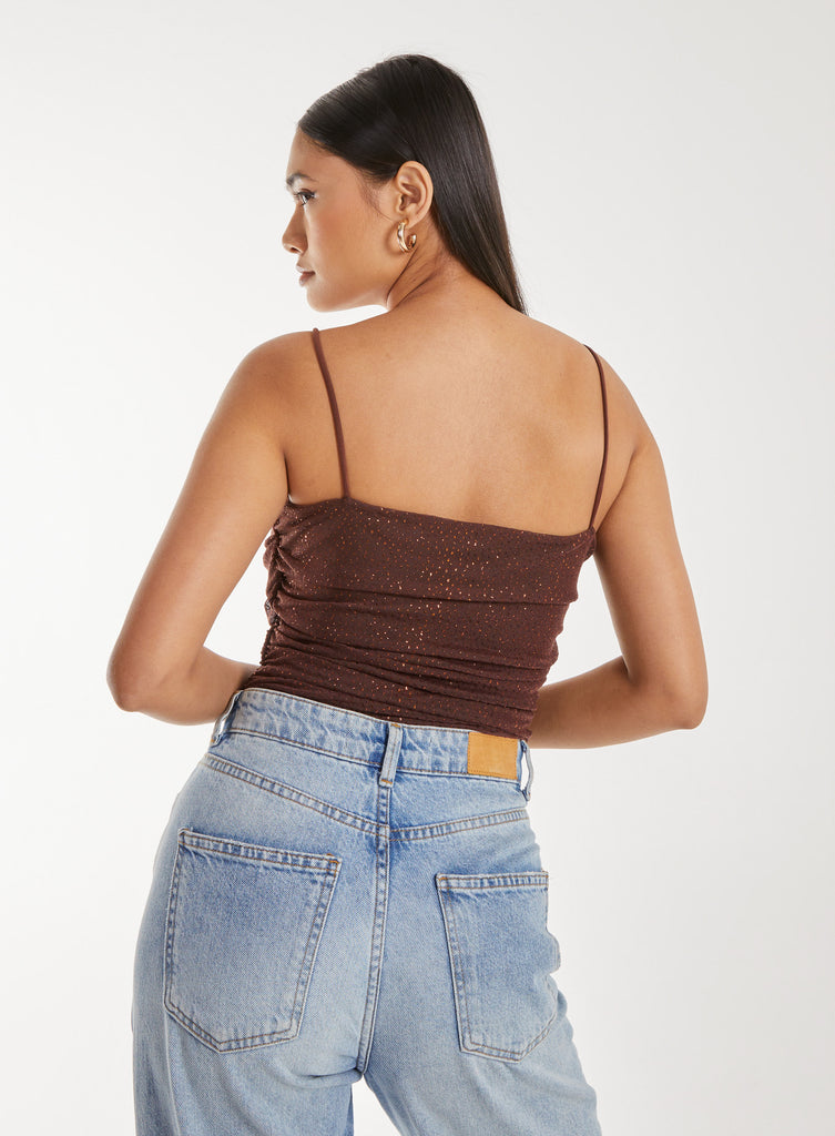 Make it you weekend sparkle with this Strappy Sparkle Mesh Bodysuit. For a more casual look, complete the outfit with mom fit denim jeans and diamante high heels.