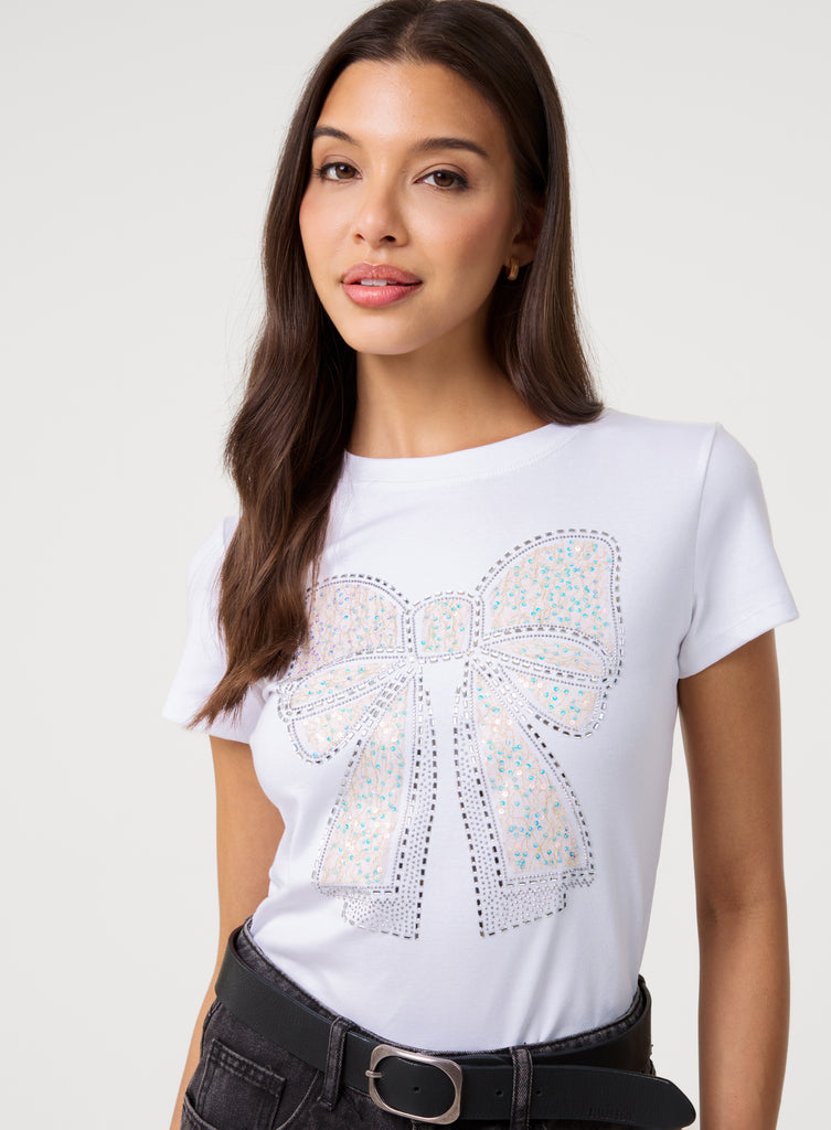 Diamante Bow Ribbon Tee