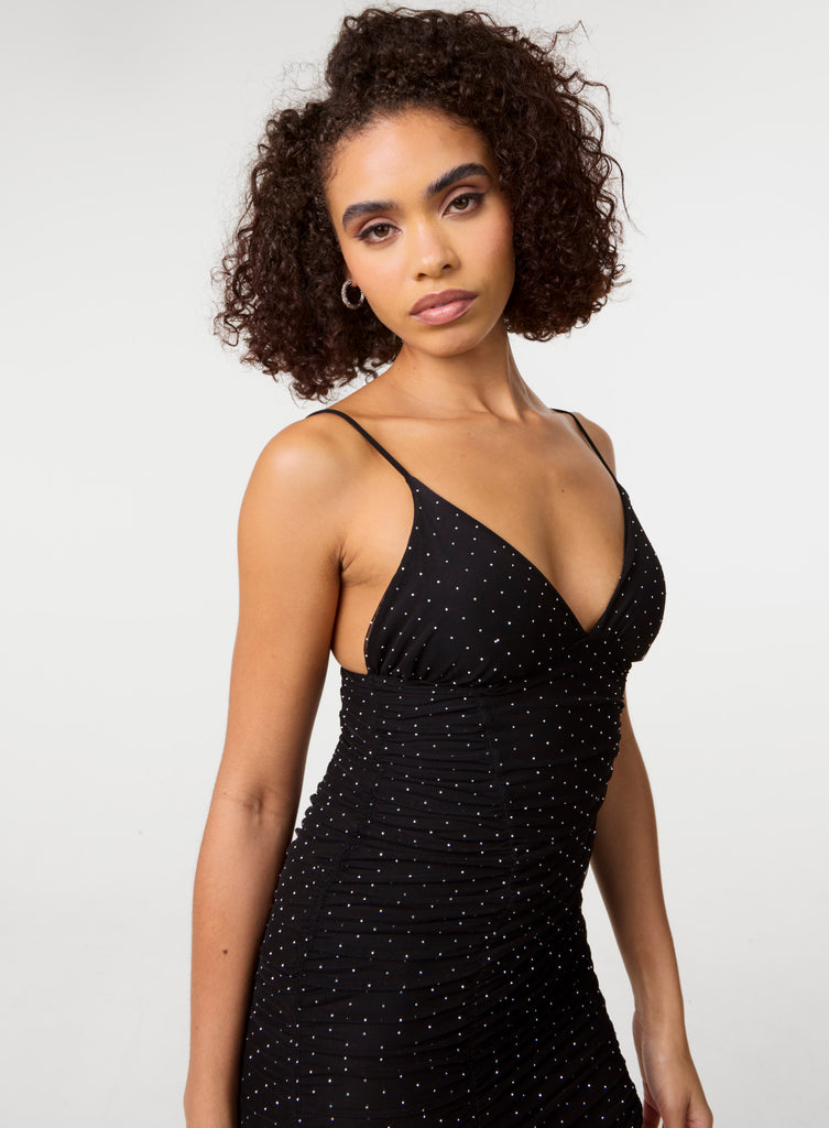 Shine on the dancefloor with this Diamante Mesh Bra Cup Gathered Dress. Fun and sexy, you'll have all eyes on you.