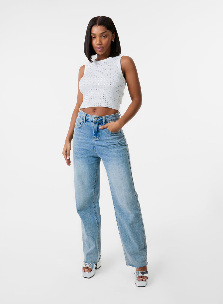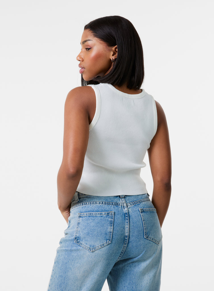 Add a little edge to your outfit of the day with this top. Featuring a ribbed material, just add statement-hue bottoms and heels for a chic, off-duty vibe.