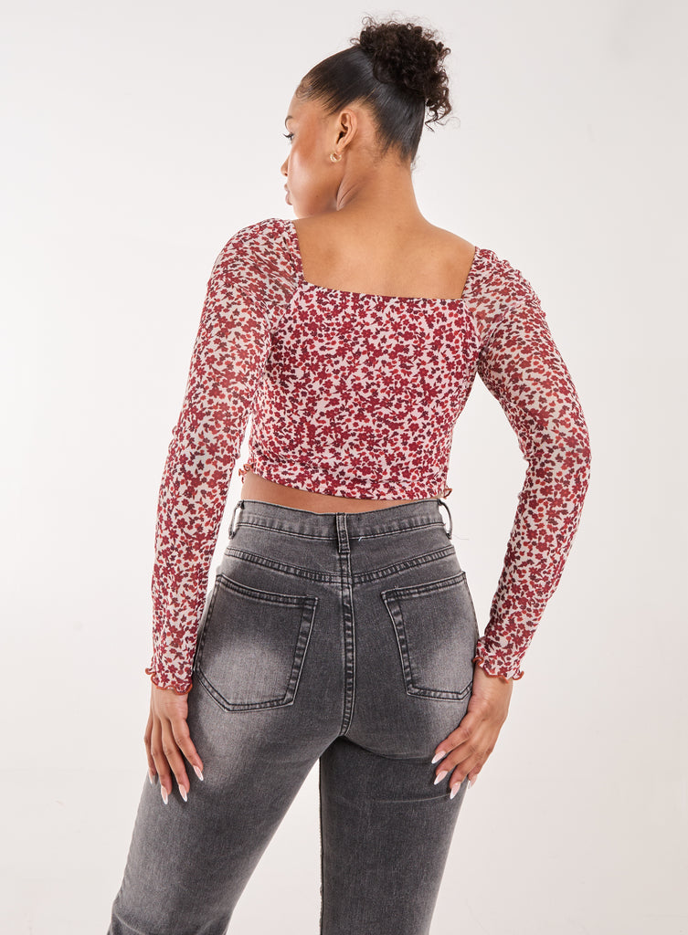 Ditsy Floral Print Long Sleeve Butterfly